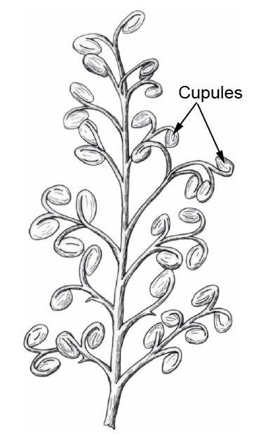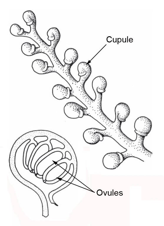 Parmi les nombreux candidats considérés comme plus proches parents des Angiospermes, une majorité de paléobotanistes s'accordent à proposer cette lignée typiquement mésozoïque. Ce sont des arbres portant des feuilles composées à palmées et surtout des ovules regroupés dans des cupules en forme d'urnes, fixés sur la face adaxiale (urnes non homologues de celles des Corystospermales) et qui selon de nombreux auteurs pourraient préfigurer les carpelles des Angiospermes. L'illustration montre un rameau fertile de Caytonia et une cupule en coupe.